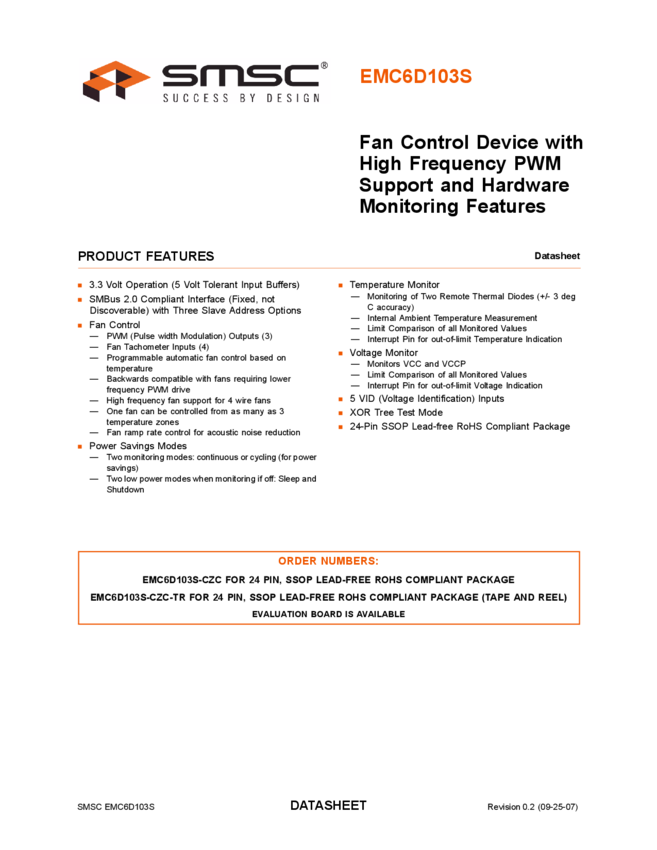 EMC6D103S Fan Control Device with High Frequency PWM Support and Hardware Monit (09/25/2007)