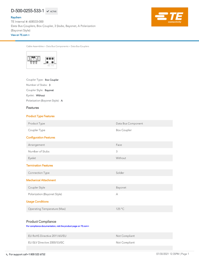 TE Connectivity TE RAY Data Bus Harnesses D63060-000, 1x -02050007082200