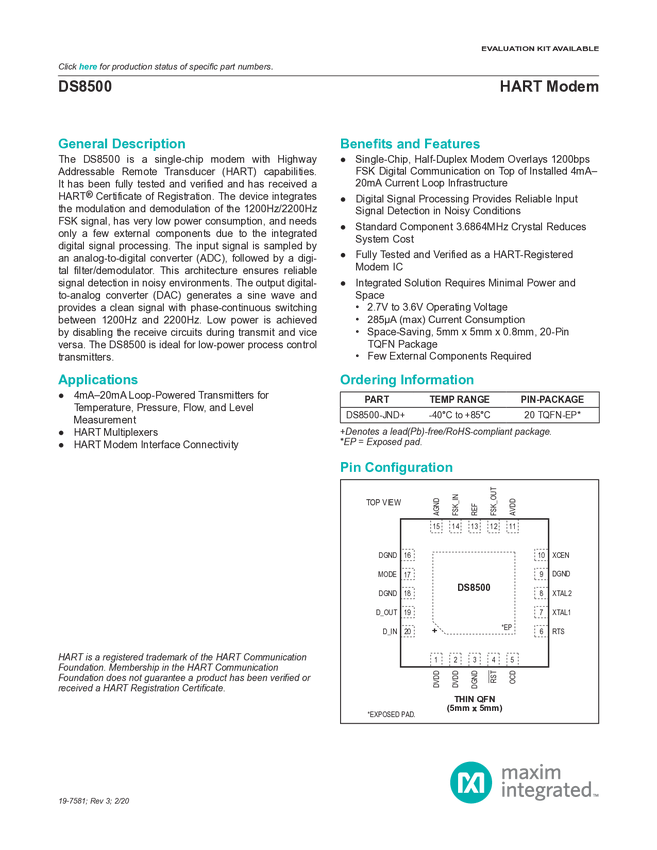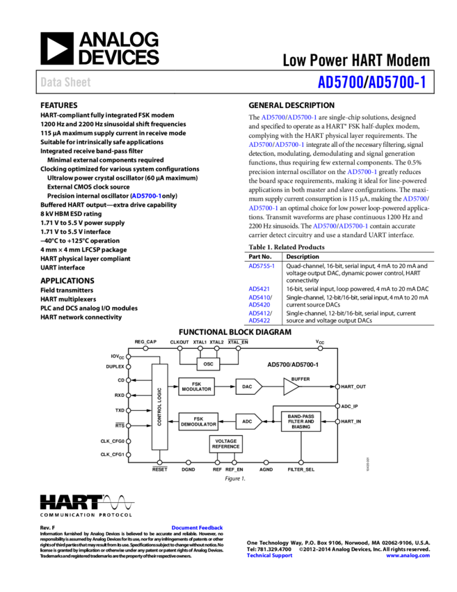 AD5700-1: Low Power HART Modem with Precision Internal Oscillator