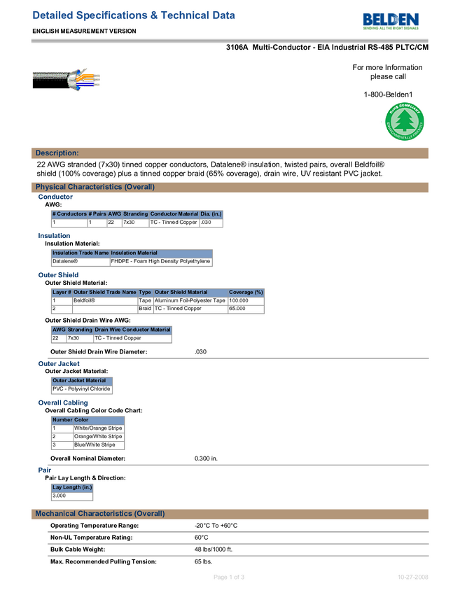 kabel Hart, CAN,SFTP 1,5 pary,linka 22AWG,EIA RS485,PVC