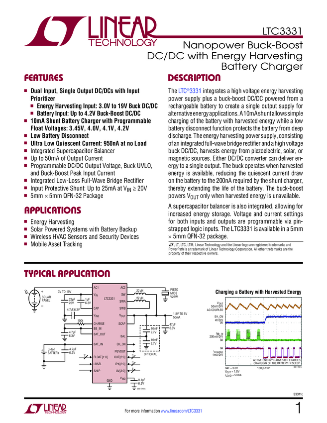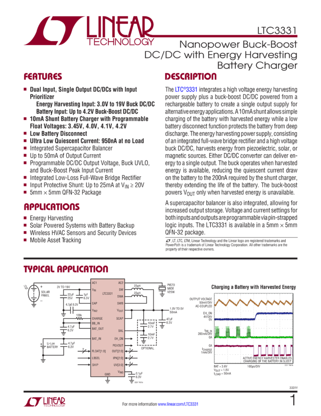 Nanopower Buck-Boost DC/DC with Energy Harvesting Battery Charger