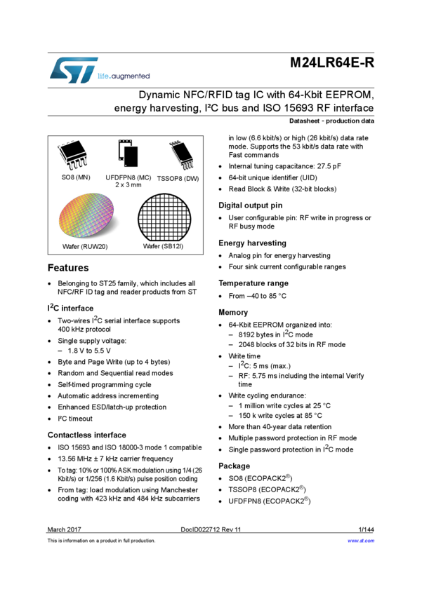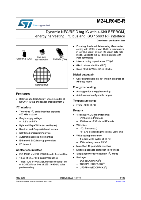 64-Kbit Dynamic NFC/RFID tag with password protection, energy harvesting and RF status functions