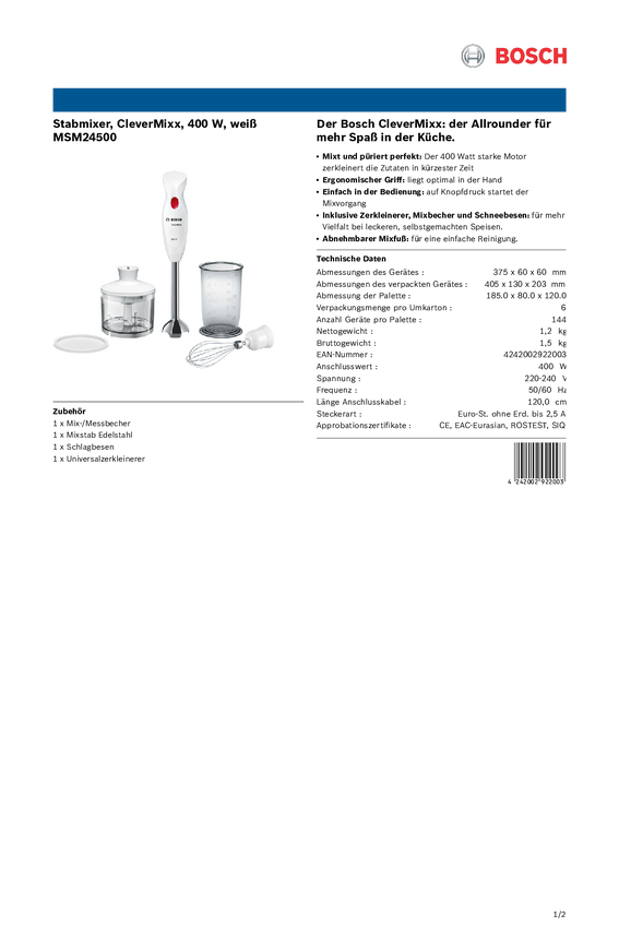 Blender ręczny Bosch Haushalt MSM24500, 400 W