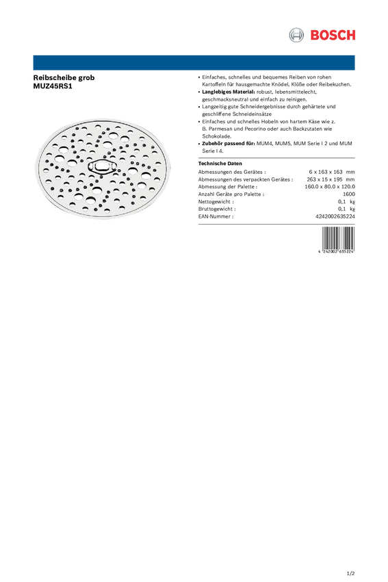 Tarka do placków ziemniaczanych Bosch Haushalt MUZ45KP1, stali szlachetnej