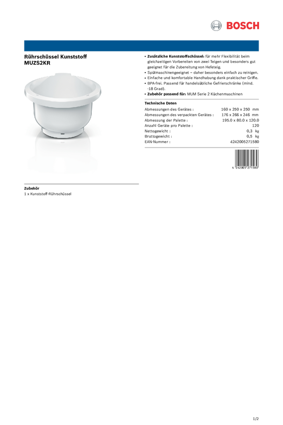 Miska do mieszania Bosch Haushalt MUZS2KR, biały
