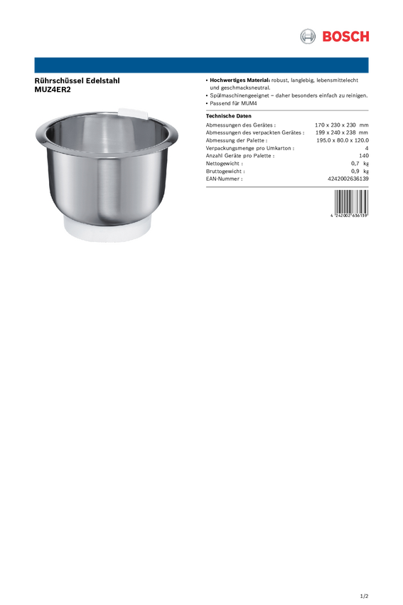Miska do mieszania Bosch Haushalt MUZ4ER2, stali szlachetnej