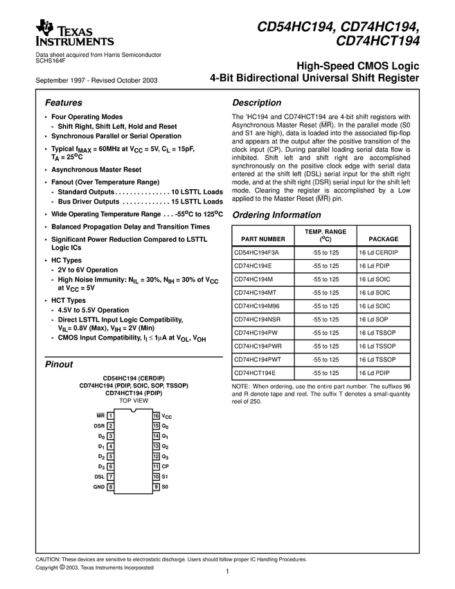 Układ scalony 74HC194SMD, 4-bit. rej. przes, SO16