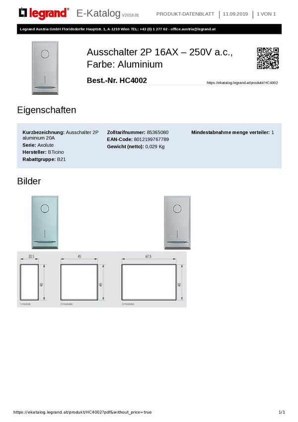 Legrand Wyłącznik Axolute aluminiowy HC4002 1 szt.