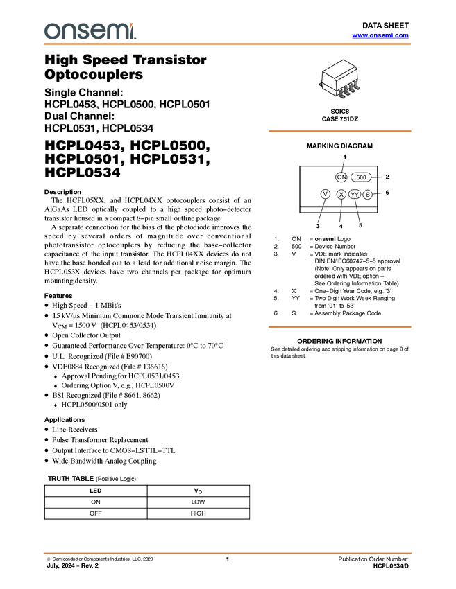 8-Pin SOIC 1 Mbit/s Single-Channel High Speed Transistor Output Optocoupler