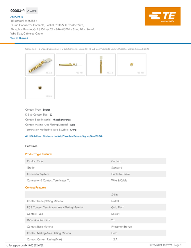 TE Connectivity 66683-4 TE AMP AMPLIMITE HD20 Crimp Snap-In, 1 szt.