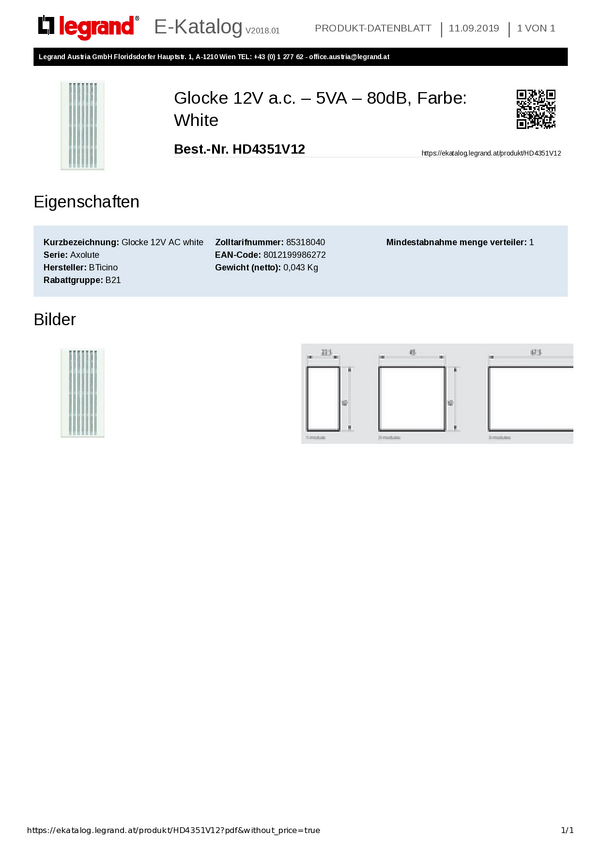 Legrand GONG Axolute biały HD4351V12 1 szt.