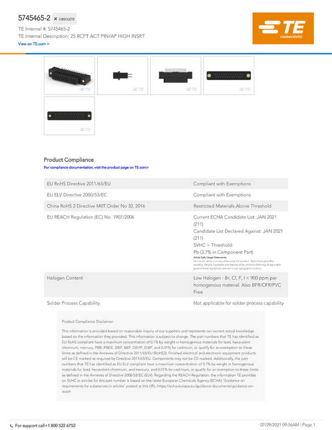 TE Connectivity 5745465-2 TE AMP AMPLIMITE HDP ACTION PIN, 1 szt.