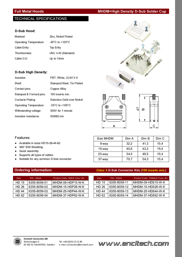 encitech MHDM-25-HDP44-W-K 6355-8059-03 Zestaw listew męskich D-Sub 180 ° Ilość styków: 44 kielich lutowniczy 1 szt.