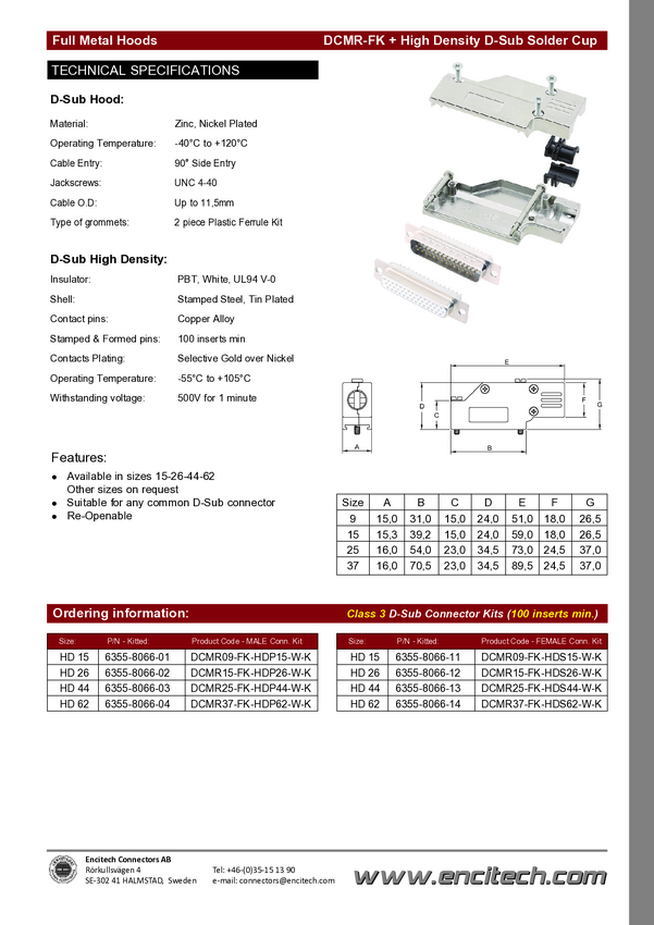 encitech DCMR09-FK-HDP15-W-K 6355-8066-01 Zestaw listew męskich D-Sub 90 ° Ilość styków: 15 kielich lutowniczy 1 szt.