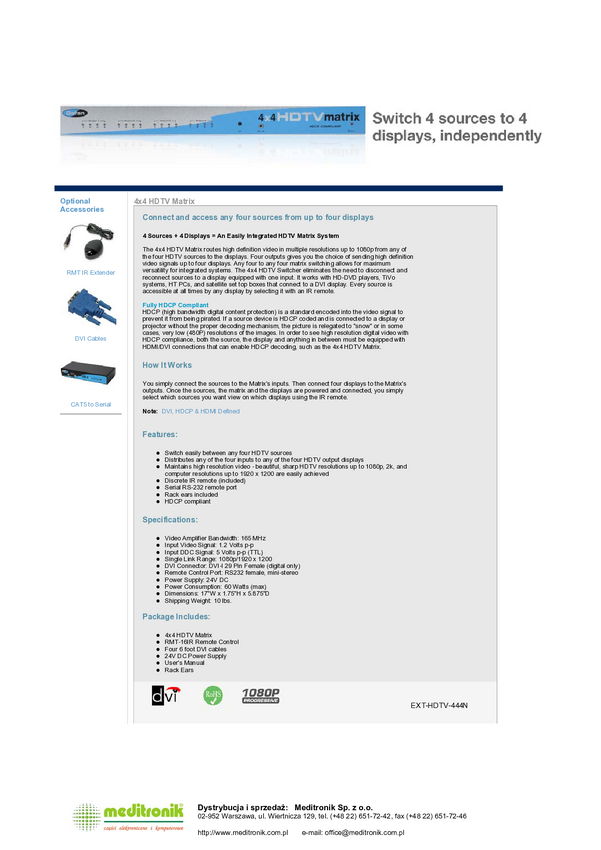 Low Voltage, 300 MH Quad 2:1 Mux Analog HDTV Audio/Video Switch