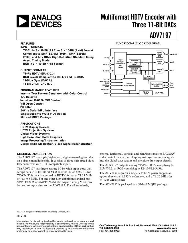 10-Bit, Integrated, Multiformat SDTV/HDTV Video Decoder and RGB Graphics Digitizer