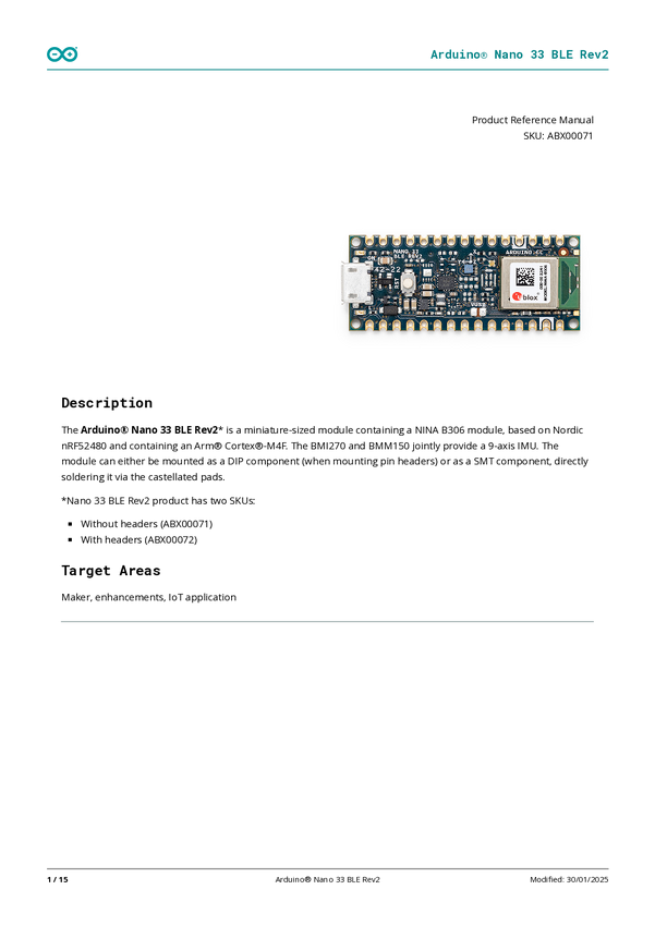Arduino Nano 33 BLE Rev2 with headers