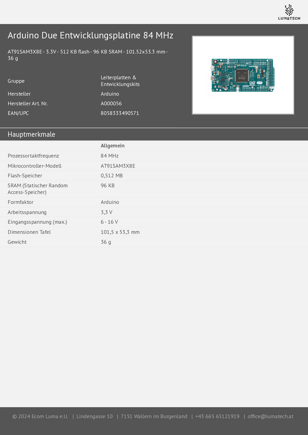 Arduino A000056 Płytka Due without Headers Core
