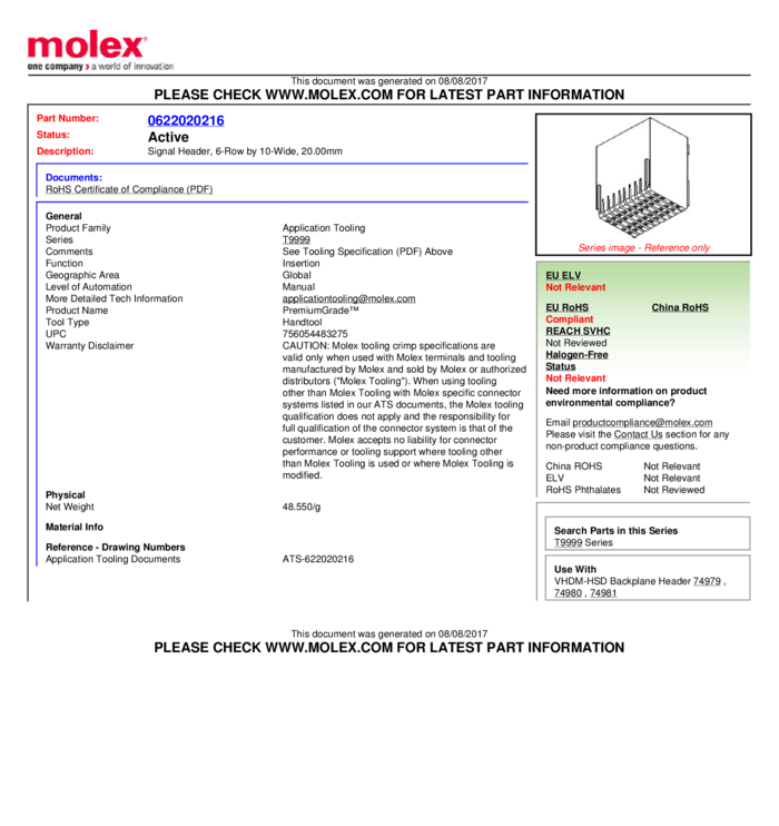 VHDM Insertion Module For Advanced Mate Signal Header, 6 Row By 25 Wide