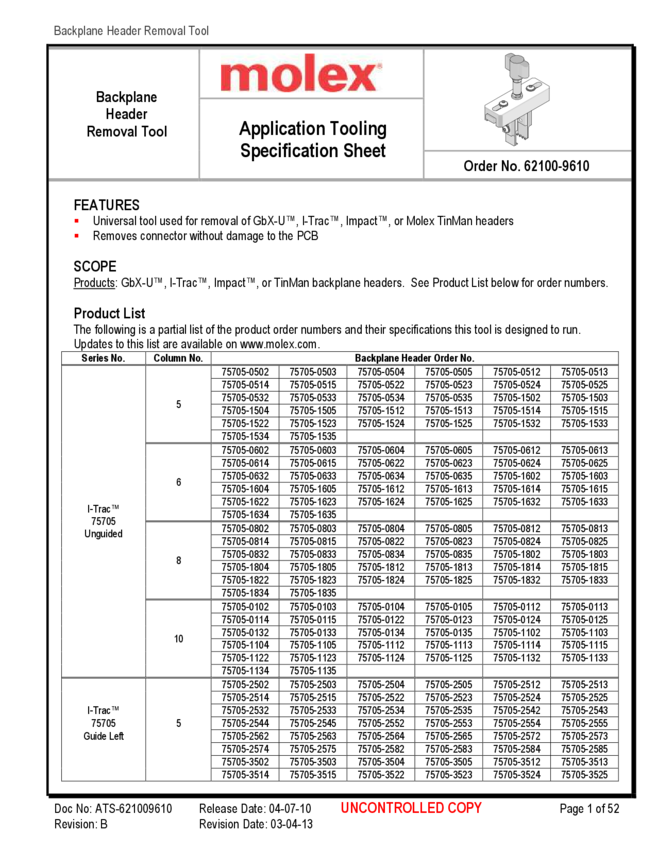 Header Removal Tool For GbX-U, I-Trac, Impact Backplane Headers