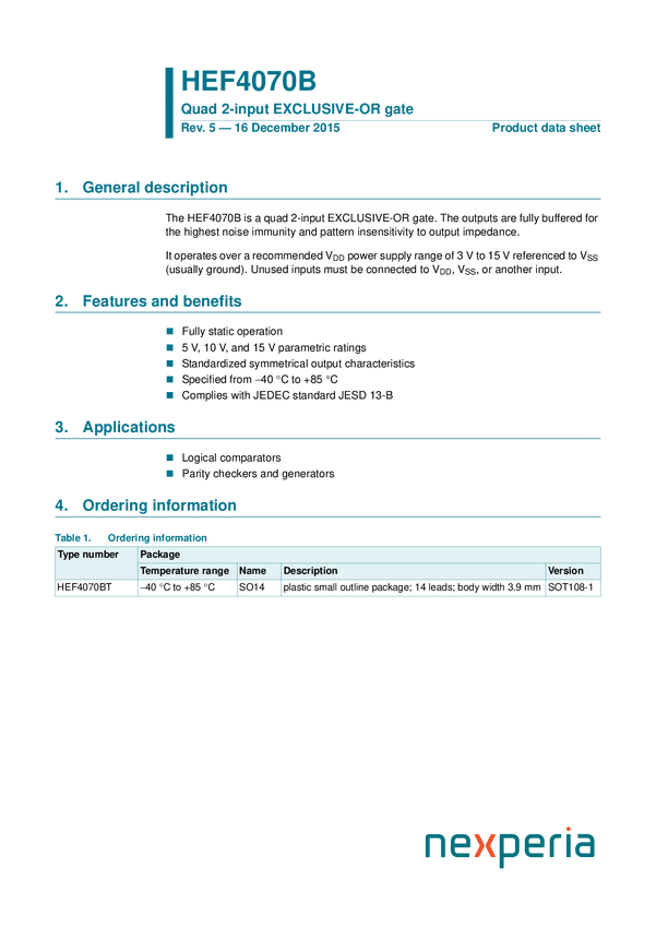 Układ logiczny IC - Grama i inwerter Nexperia HEF4070BT,653 HEF4070BT,653, 1 szt.