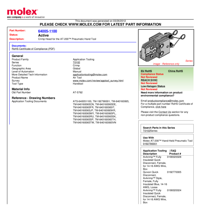Crimp Tool For AT-200 Hand-Held Pneumatic Tool