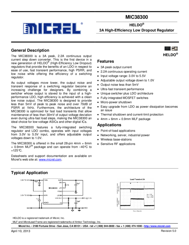 MIC38300 - HELDO® 3A High-Efficiency Low Dropout Regulator