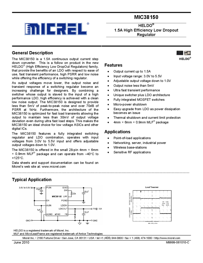 MIC38150 - HELDO® 1.5A High Efficiency Low Dropout Regulator