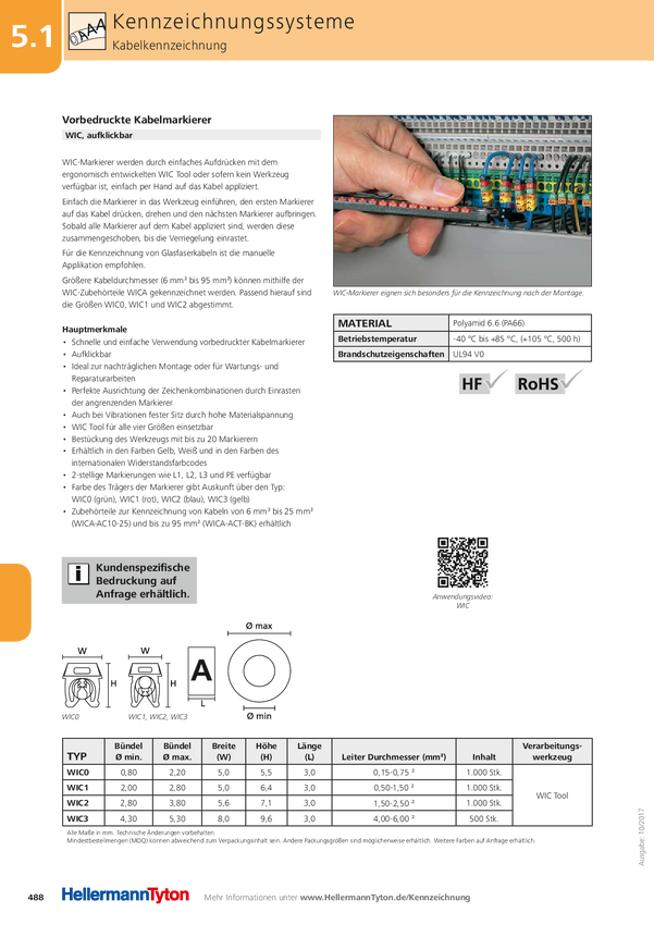 Oznacznik kablowy HellermannTyton WICA-AC10-25-PA66HIRHS-BK (100) 561-06001, 1 szt.