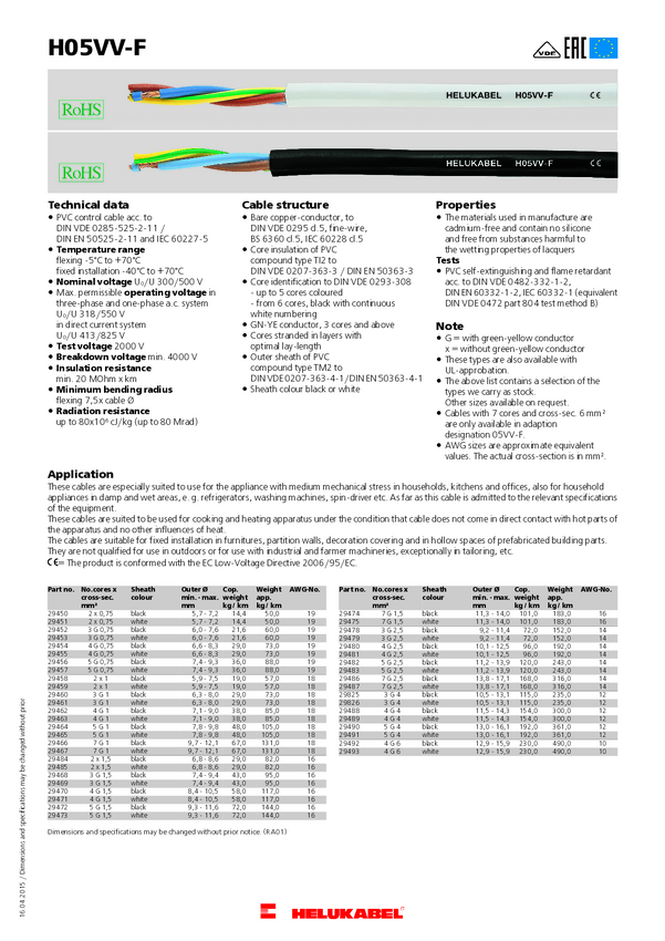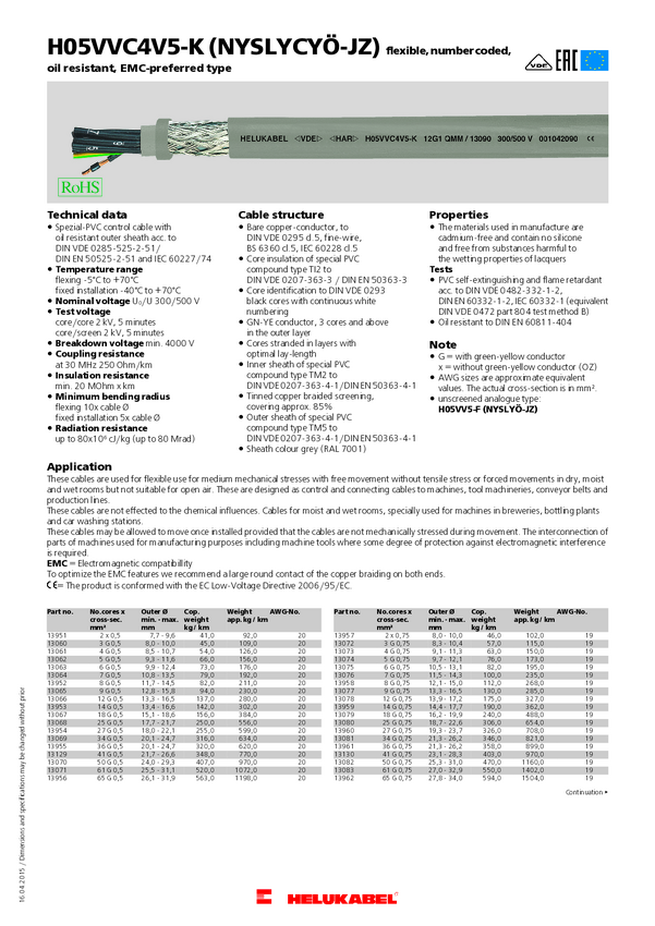 Helukabel 13110 Przewód sterowniczy H05VVC4V5-K (NYSLYCYÖ-JZ), 4 G 2.5 mm², 100 m