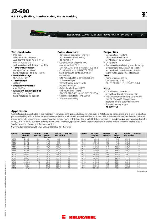 Helukabel 10386-500 Przewód sterowniczy JZ-500 Black, 4 G 25 mm², 500 m