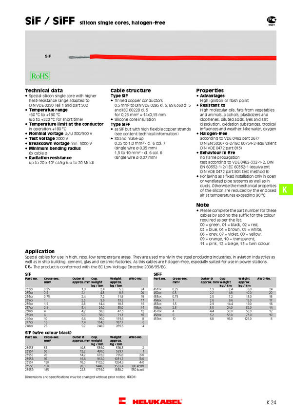 Przewód; SiF; linka; Cu; 0,25mm2; silikon; biały; -60÷180°C; 500V; 23205; HELUKABEL; SIF0.25-WH