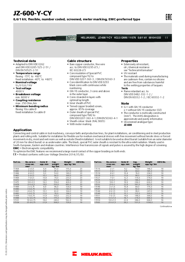 Helukabel JZ-600-Y-CY Przewód sterowniczy 25 G 1.5 mm² czarny 11563-500 500 m