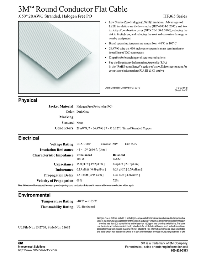 Kabel płaski, taśmowy 3M FBC HF365/10 100, 30 V, 10 x, Produkty w metrach bieżących