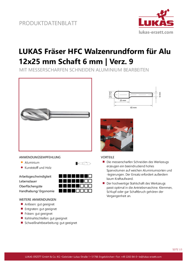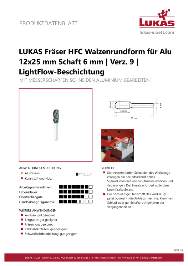 Frezarka LUKAS-ERZETT HFC 1225.06 Z9 Alu LightFlow A10021225609LF, 1 szt.