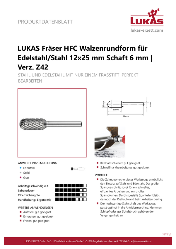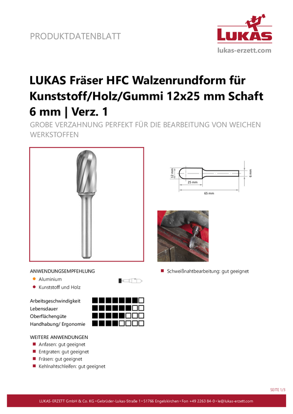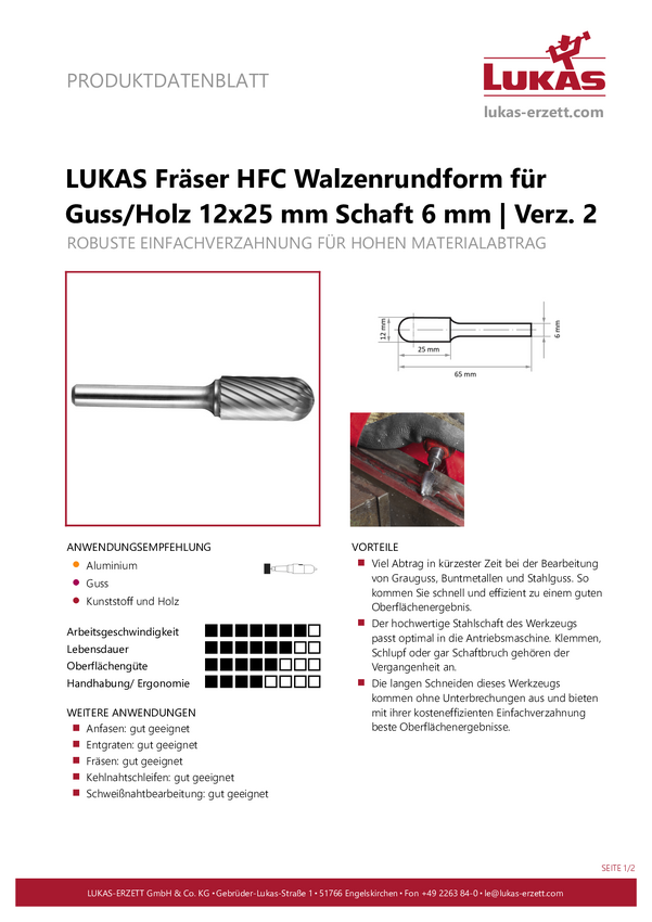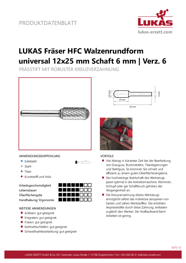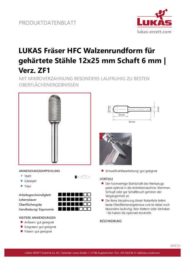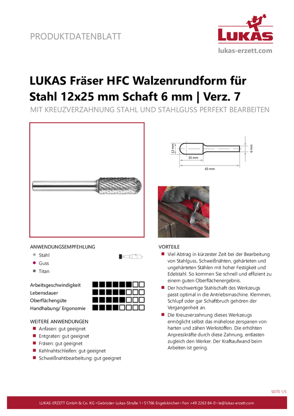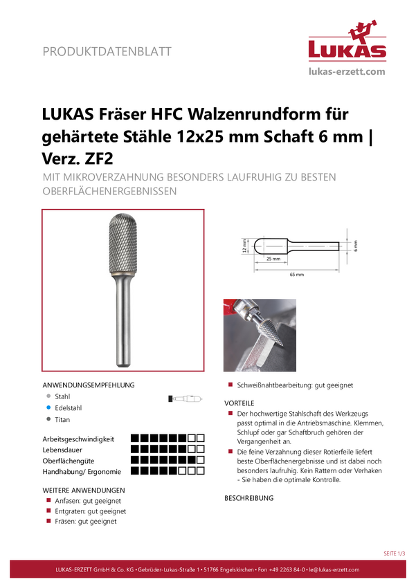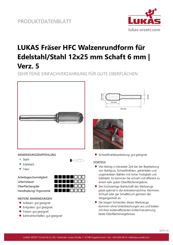 Frezarka LUKAS-ERZETT HFC 1225.06 Z7 TiAlN A10021225608TIALN, 1 szt.