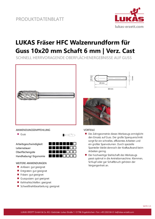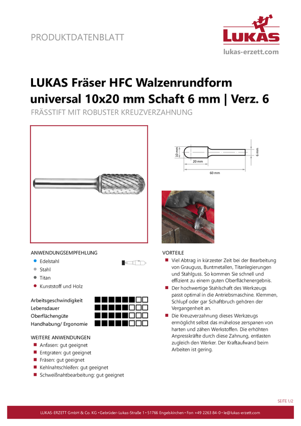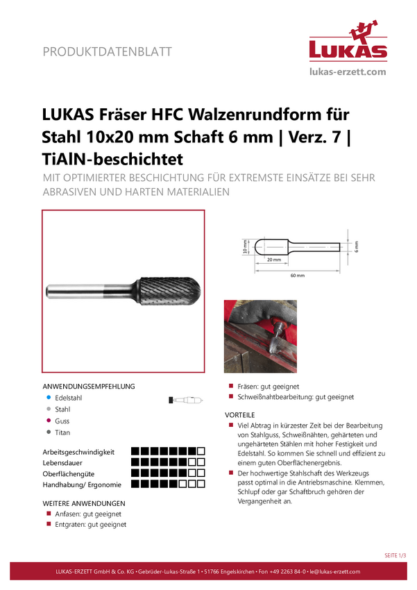 Frezarka LUKAS-ERZETT HFC 1020.06 Z7 TiAlN A10021020608TIALN, 1 szt.