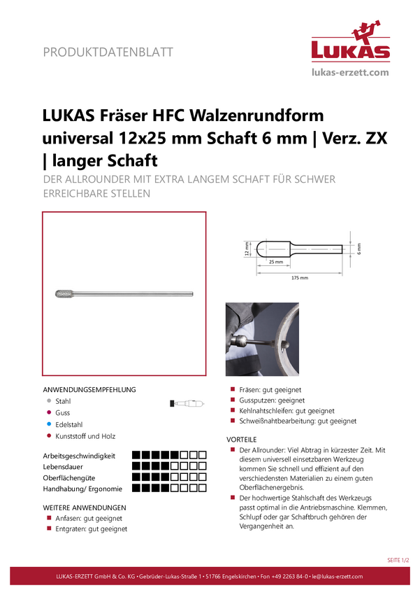 Frezarka LUKAS-ERZETT HFC 1225.06 BASE-X ZX SL.150 A10021225622150, 1 szt.