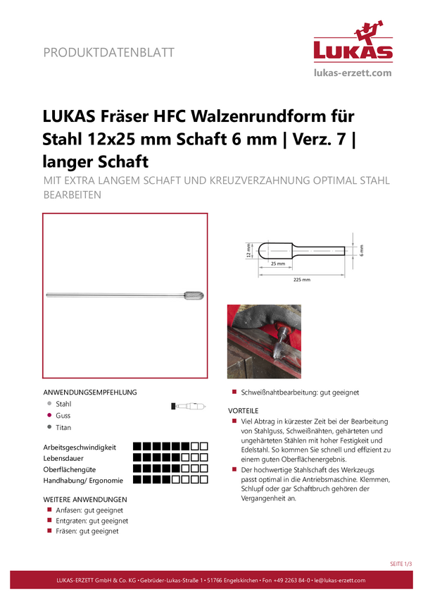 Frezarka LUKAS-ERZETT HFC 1225.06 L Z7 SL 200 A10021225608200, 1 szt.