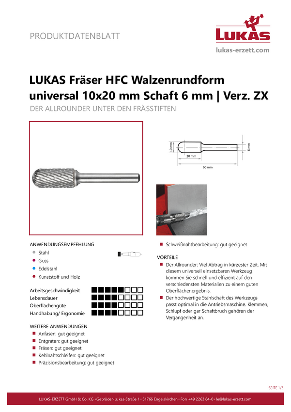 Frezarka LUKAS-ERZETT HFC 1020.06 BASE-X ZX SL.150 A10021020622150, 1 szt.