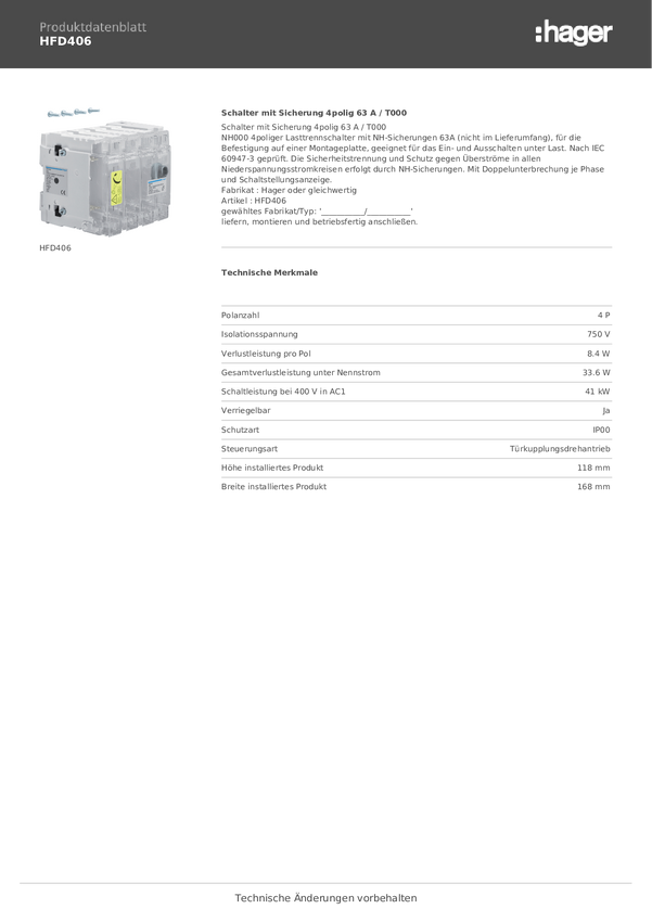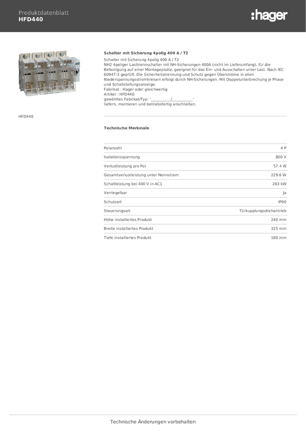 Hager HFD440 Przełącznik 4 styki 400 A 1 szt.