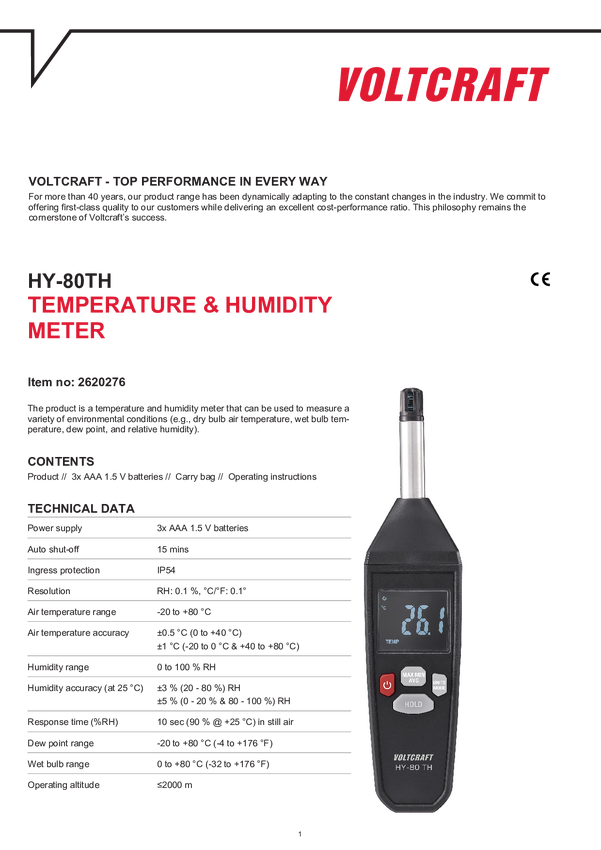 Higrometr VOLTCRAFT Kalibracja (DAkkS)