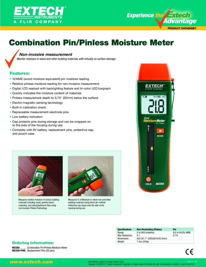 Higrometr do materiałów budowlanych Extech MO260, inwazyjny