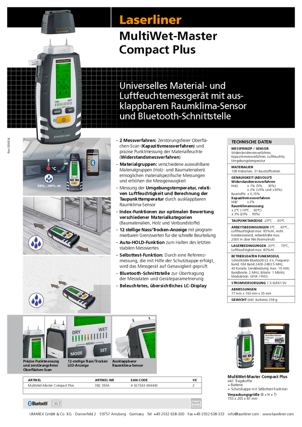 Higrometr do materiałów budowlanych Laserliner MultiWet-Master Compact Plus