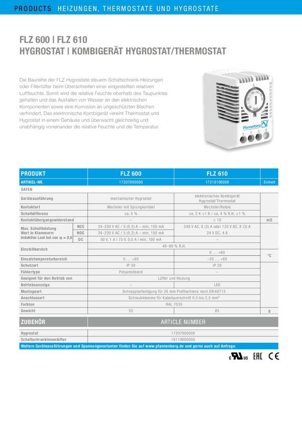 Higrostat Pfannenberg FLZ 600 HYGROSTAT 40-90% r.F.