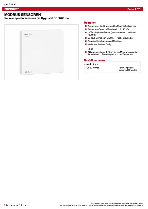 Termostat pokojowy, Higrostat Müller 23929 GS 30.00 mod