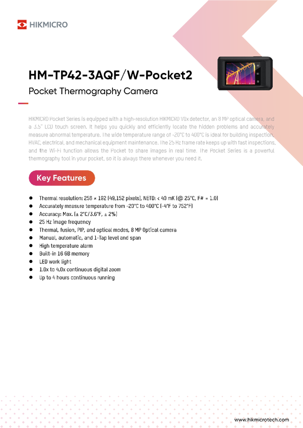 Kamera termowizyjna HIKMICRO HM-TP42-3AQF/W-Pocket2 -20 do 400 °C Kalibracja (DAkkS)