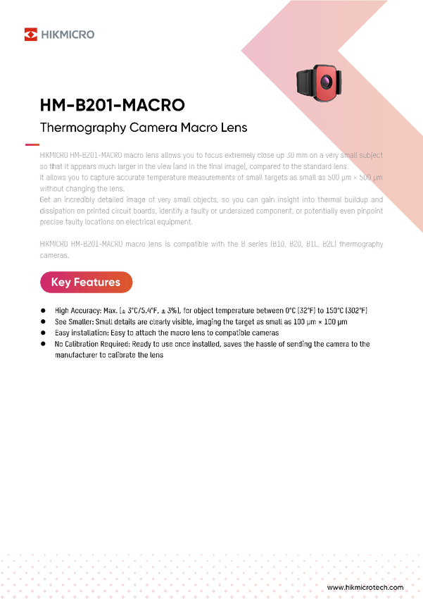 HIKMICRO HM-B201-MACRO HM-B201-MACRO Obiektyw aparatu Pasuje do marki Hikmicro Szerokość produktu 25 mm Wysokość produkt