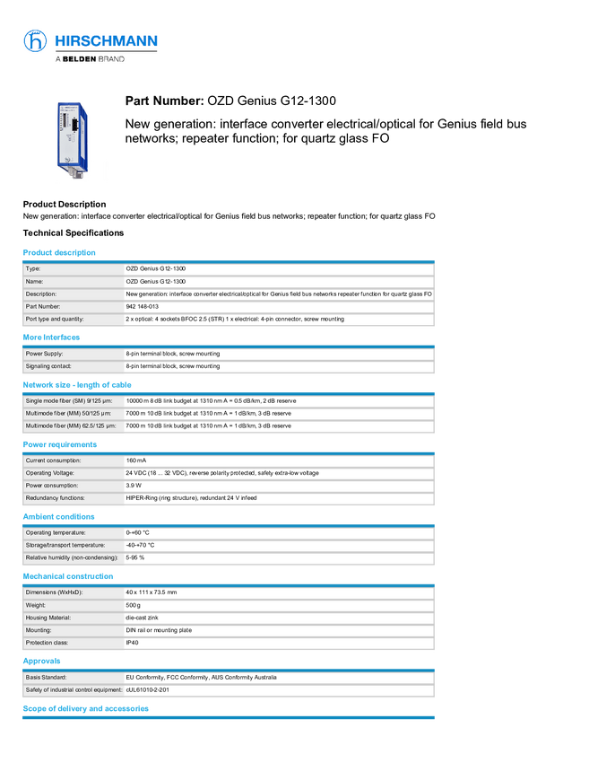 Konwerter interfejsu Hirschmann 942 148-013 Profibus 24 V/DC
