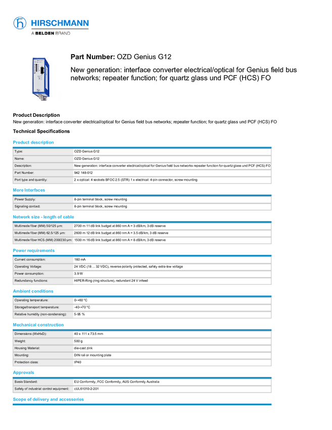 Konwerter interfejsu Hirschmann 942 148-012 Profibus 24 V/DC